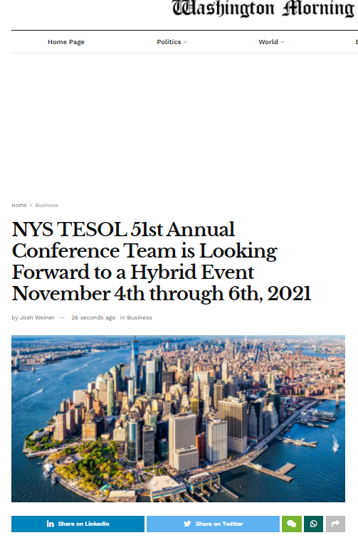 The NYS YESOL 51st Conference team is excited to have the conference “Looking Forward: Educational Empowerment and Transformative Education” featured in the Washington Morning!