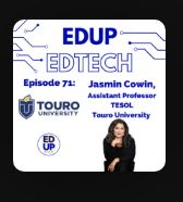 Holly Owens, “In this episode, I got to chat with my friend, Dr. Jasmin Cowin from Touro University! Jasmin is an Assistant Professor of TESOL, Ed Tech guru, and lover of all things education. In this episode, you get to hear about Jasmine’s journey into education, her thoughts on jobs of the future, and what we should be doing to prepare our educators for 21st-century classrooms.”